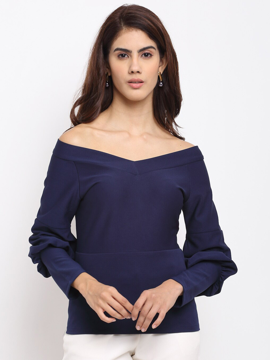 Be the first to review “Navy Blue Off-Shoulder Sheen Bardot Top” Cancel reply