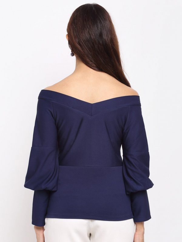 Navy Blue Off-Shoulder Sheen Bardot Top