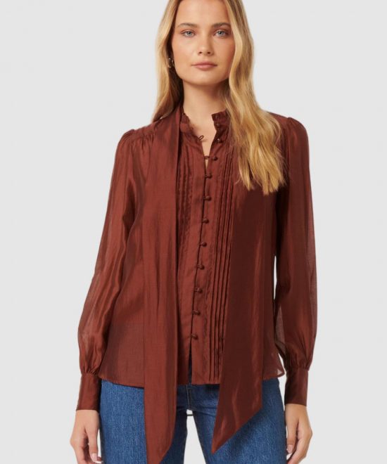 – Blouson sleeves with gathered cuffs for sculptural volume